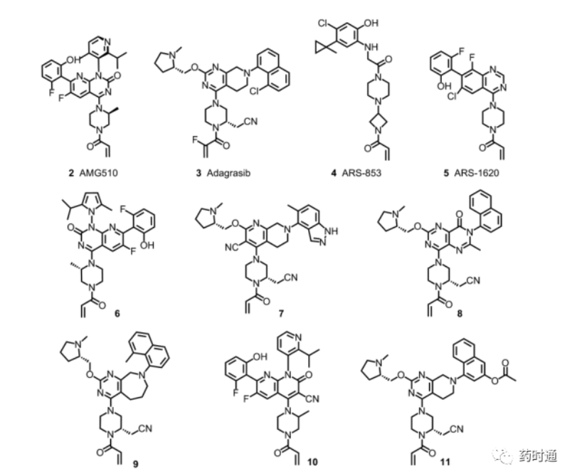 阿达格拉西布(adagrasib,MRTX849)是另一种可口服的 KRAS G12C 小分子共价抑制剂(3,图3),具有与AMG510相同的作用机制。该化合物的上市申请已于2022年2月15日向美国食品药品管理局(FDA)提交,用于治疗KRAS G12C突变且此前接受过至少1次全身治疗的非小细胞肺癌患者。