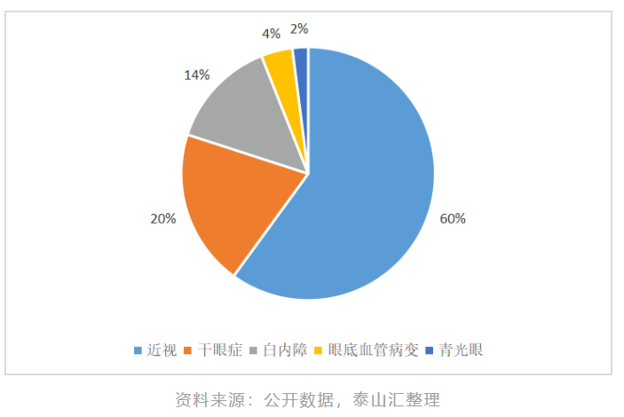 眼科患病人群不断增长,医疗支出持续上升:一方面,随着人口老龄化加剧,经济快速发展,手机、电脑等电子产品的普及,年龄相关性眼病、代谢相关性眼病、以及高度近视引发的眼底病变凸显。目前,我国仍是世界上盲和视觉损伤患者最多的国家之一。具体来说,我国青少年近视率不断攀升,且以年轻人为主,教育部数据显示,2020年,我国儿童青少年总体近视率为 52.7%,较 2019 年上升了 2.5 个百分点; 除近视人口迅速攀升外,我国干眼症患者数量也在继续增加,并呈现低龄化趋势;此外,我国视网膜疾病患者人群也在进一步增长,带来较大的市场空间。